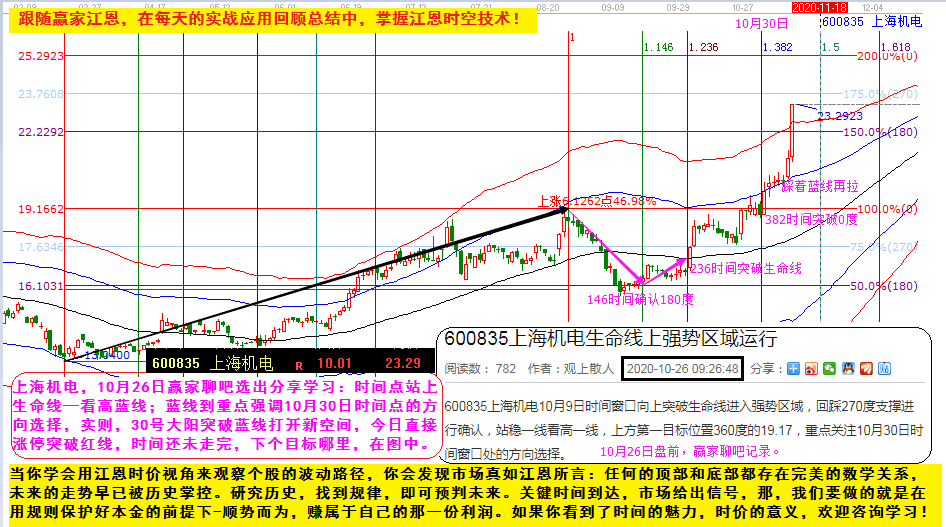 上海機電,10月26日贏家聊吧選出分享學(xué)習(xí):時間點站上生命線—看高藍線;藍線到重點強調(diào)10月30日時間點的方向選擇,實則,30號大陽突破藍線打開新空間,今日直接漲停突破紅線,時間還未走完,下個目標(biāo)哪里,在圖中。