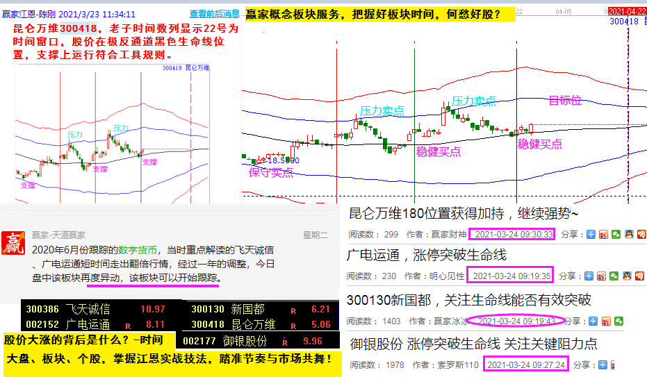 周二(3月23日),贏家VIP學(xué)員群提前解讀數(shù)字貨幣,今日該板塊個(gè)股紛紛大漲,正式學(xué)員先人一步把握市場機(jī)會(huì)!股價(jià)大漲的背后是什么?——答案:時(shí)間。當(dāng)你懂得敬畏、付出學(xué)習(xí),做好跟隨,不論大盤、板塊還是個(gè)股,就可以做到踏準(zhǔn)節(jié)奏與市場共舞。關(guān)注贏家江恩的技術(shù)和消息,請先提升自己的投資意識(shí)。好股、好的買賣分析、好的操盤技術(shù),你需要的,贏家都有。合作詳情,聯(lián)系管理!