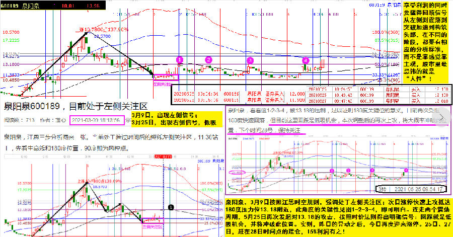 泉陽(yáng)泉,3月9日按照江恩時(shí)空規(guī)則,強(qiáng)調(diào)處于左側(cè)關(guān)注區(qū);次日漲??焖偕瞎サ诌_(dá)180度壓力位13.18附近,此角度的關(guān)鍵性見(jiàn)圖1-2-3-4,即可明白。連走兩個(gè)震蕩周期,5月25日再次發(fā)起對(duì)13.18的攻擊,按照時(shí)價(jià)法則得出明確信號(hào):回踩就是低吸機(jī)會(huì),并將沖破此位置。實(shí)則,6月2日的異動(dòng)之后,3日再度迎來(lái)漲停。25日、27日,趕在28日時(shí)間點(diǎn)的建倉(cāng),15%利潤(rùn)有之!