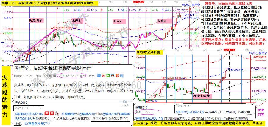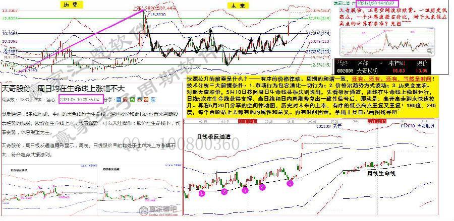 對(duì)照天奇股份,5月10日按照周日生命線共振法則選出,先看極反通道,周線在生命線上穩(wěn)健運(yùn)行,日線5次在生命線獲得支撐,當(dāng)日線和日內(nèi)周期修復(fù)出一致性信號(hào)后,那就是:高開高走迎來快速拉升。再看5月20日分享的空間律動(dòng)圖,歷史對(duì)未來的主宰,有序的低點(diǎn)高點(diǎn)重復(fù)又重復(fù)!180度,240度,每個(gè)臺(tái)階站上去都有他的屬性和意義。再有時(shí)間因素,拿出工具自己畫圖找尋吧!