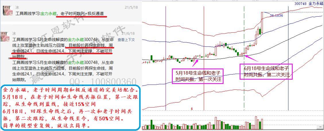 5月18日,老子時(shí)價(jià)和生命線共振位置,第一次跟蹤,從生命線到藍(lán)線,接近15%空間。6月18日,回踩生命線之后,再一次和老子時(shí)間周期共振,第二次開始跟蹤,從生命線至今,有50%空間。股不需要多,在于精。好的機(jī)會(huì),簡(jiǎn)單的模型重復(fù)做,操作就是這么簡(jiǎn)單。