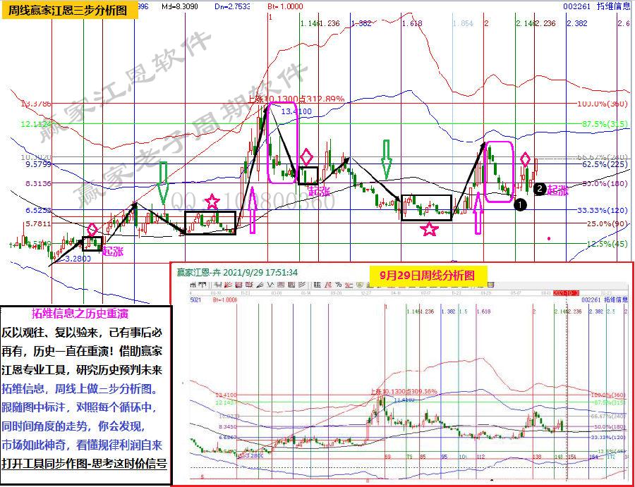 拓維信息,周線上做三步分析圖。跟隨圖中標(biāo)注,對照每個(gè)循環(huán)中,同時(shí)間角度的走勢,你會發(fā)現(xiàn),市場如此神奇,看懂規(guī)律利潤自來打開工具同步作圖-思考這時(shí)價(jià)信號!