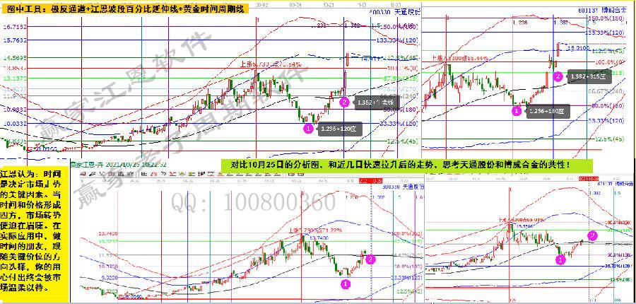 先看天通股份,10月25日分析圖:1.236時(shí)間在120度價(jià)格止跌回升,突破生命線趨勢(shì)轉(zhuǎn)強(qiáng),顯示10月28日是382窗口,實(shí)則28日踩著生命線快速拉升,走出兩板行情?! ?/p>