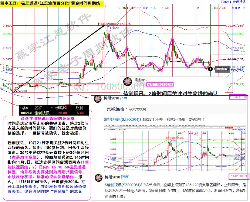 佳創(chuàng)視訊,10月21日強(qiáng)調(diào)關(guān)注2倍時(shí)間后對(duì)生命線的確認(rèn)。如圖:180度壓制,回落生命線洗盤。26號(hào)更是跳空低開(kāi)直接下砸3分位區(qū)間(亦是周生命線),按照規(guī)則強(qiáng)調(diào)2.146時(shí)間指向11月3日。抵達(dá)支撐區(qū)間后觀察兩點(diǎn)1)量能快速萎縮;2)日內(nèi)5-15-30-60極反通道位置,均殺跌到支撐處則為周期共振信號(hào),止跌反彈在即。標(biāo)準(zhǔn)的挖坑洗盤動(dòng)作。那么,11月3日時(shí)間抵達(dá),開(kāi)盤就是20CM。打開(kāi)工具同步畫圖,并對(duì)應(yīng)各周期極反通道位置去看,你會(huì)深刻理解“黃金坑”的意義。
