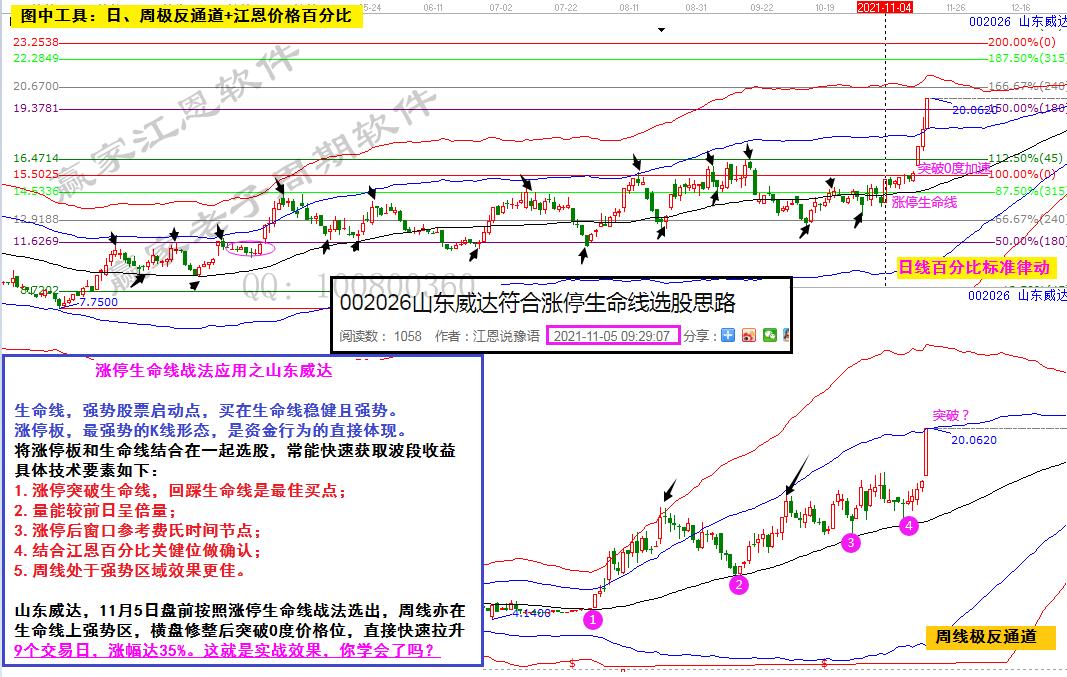 山東威達(dá),11月5日盤前按照漲停生命線戰(zhàn)法選出,周線亦在生命線上強勢區(qū),橫盤修整后突破0度價格位,直接快速拉升。9個交易日,漲幅達(dá)35%。這就是實戰(zhàn)效果,你學(xué)會了嗎?