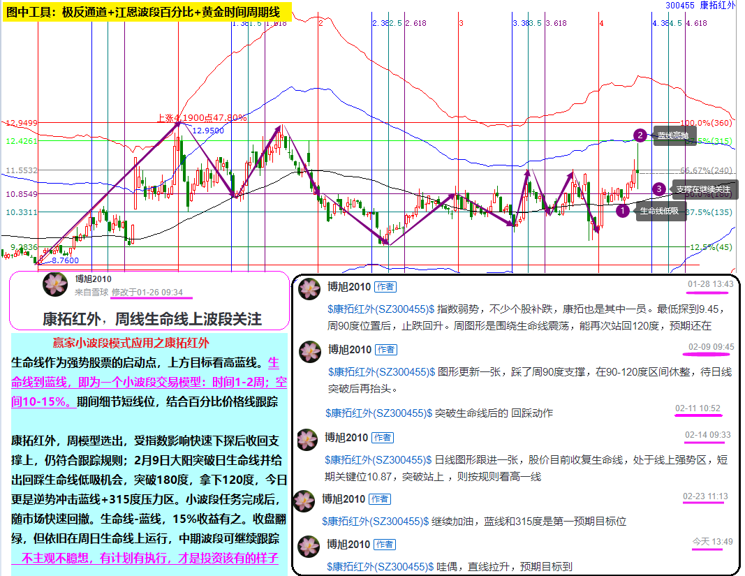 康拓紅外,周模型選出,受指數(shù)影響快速下探后收回支撐上,仍符合跟蹤規(guī)則;2月9日大陽突破日生命線并給出回踩生命線低吸機(jī)會(huì),突破180度,拿下120度,今日更是逆勢(shì)沖擊藍(lán)線+315度壓力區(qū)。小波段任務(wù)完成后,隨市場快速回撤。生命線-藍(lán)線,15%收益有之。收盤翻綠,但依舊在周日生命線上運(yùn)行,中期波段可繼續(xù)跟蹤?! ?/p>