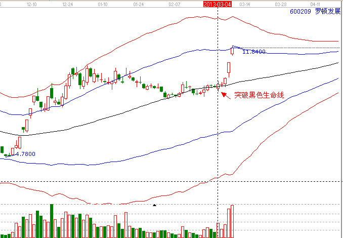 一;首先趨勢(shì):極反通道:600209,,2013.3.04突破生命線位置,(江恩12法則之決定市場(chǎng)各趨勢(shì)轉(zhuǎn)向,極反通道,生命線是強(qiáng)勢(shì)個(gè)股的啟動(dòng)點(diǎn),也是一個(gè)股票強(qiáng)勢(shì)跟弱勢(shì)的分水嶺,)