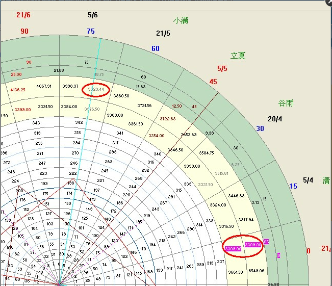 運(yùn)用江恩輪種輪3月15日分析的螺紋1310,上方阻力3929點(diǎn),當(dāng)天最高點(diǎn)3920點(diǎn)之后迅速回落,(輪種輪,是江恩發(fā)明的經(jīng)典工具之一,其靈感來(lái)自于宇宙時(shí)空關(guān)系,)