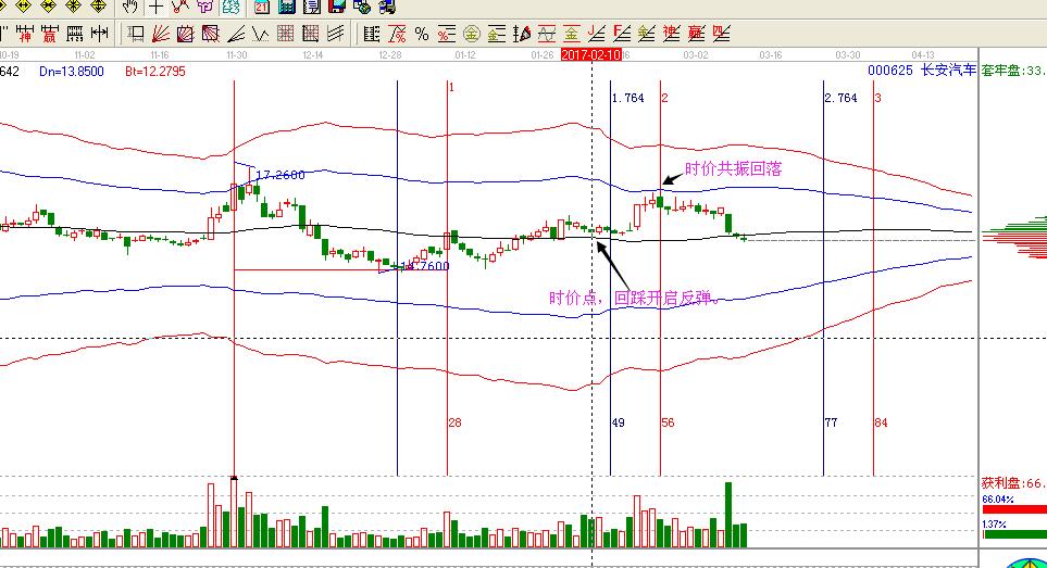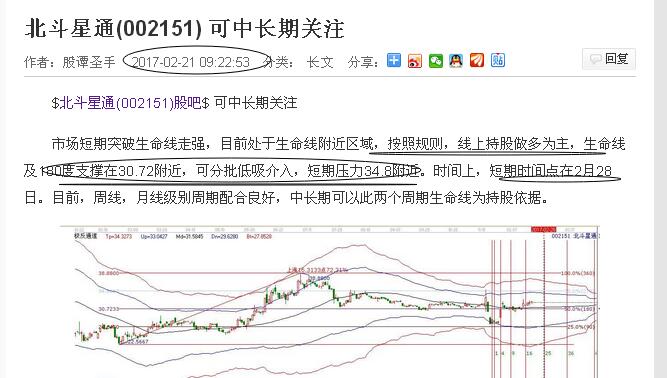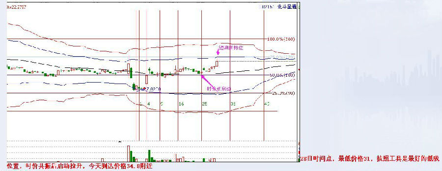 而市場后期的走勢完全印證了前期的分析,選出后,股價(jià)回落生命線,并在時(shí)間點(diǎn)2月28日啟動(dòng)上升,快速到達(dá)藍(lán)色線,結(jié)合分析中的價(jià)格,從30.72到34.8左右,幾乎是可以完全把控,在操作的過程中,這波利潤很容易拿到10%左右的獲利空間。在實(shí)盤操作中,也曾及時(shí)的結(jié)合工具做出提示。