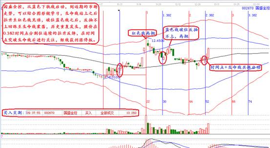 國盛金控,從藍色下軌線啟動,到近期的市場走勢,可以結(jié)合圖形做學習,生命線站上之后拉升至紅色線見頂,破位藍色線之后,反抽不上回踩至生命線震蕩,歷史重復發(fā)生,股價在0.382時間點分割位連續(xù)的拉升反彈,在時間點突破生命線后進行關注,短線獲利漲停板。