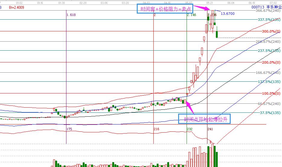 贏家江恩創(chuàng)始人王雷老師,于5月9號(hào)復(fù)盤(pán)選出豐樂(lè)種業(yè),并具備走成大牛的潛力,因此在10號(hào)贏家江恩播種建倉(cāng),并且提前就已經(jīng)計(jì)算,將于21號(hào)收割。
