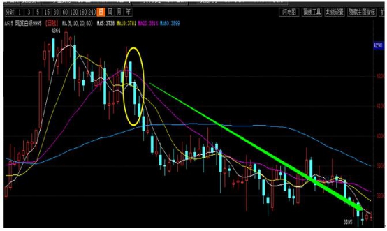 十字線,開盤收盤等價線(在高價圈出現(xiàn)十字線),并且留上下影線,當(dāng)中上影線較長。這種情況表示股票價格經(jīng)過一段時間的上漲之后,有心無力,開始要下滑,因此,這就是一個賣出的信號。