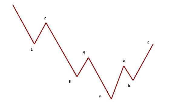 例如標(biāo)準(zhǔn)下跌,包括五浪的下跌(五段行情)就是一個(gè)完整下跌。上圖從A到F就是一個(gè)完整的五浪下跌示意圖。