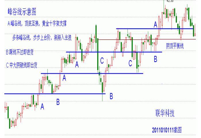 由左側(cè)峰頂和右側(cè)谷底精準(zhǔn)點連線而成,無縫重合,在實戰(zhàn)中比較少見,但是攻擊力比較強,上漲的行情比較兇猛,不斷的創(chuàng)出新高,具有單峰頂、群峰頂、單谷底和群谷底之分,而且走勢好的股票會有多條峰谷線。