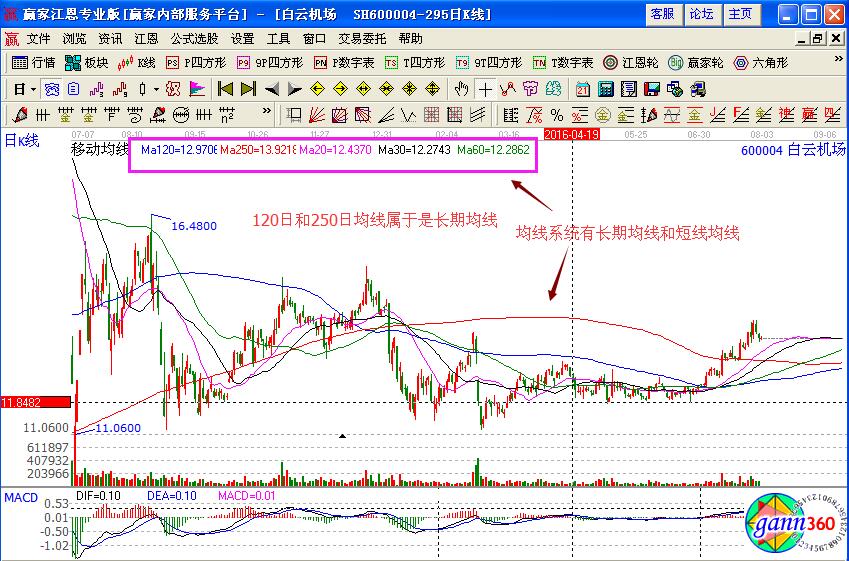 咨詢:13333833889在均線系統(tǒng)中,有季線系統(tǒng)和線系統(tǒng)兩種。其中季線系統(tǒng)有60日、40日、 20日均線,主要用來反映中長期走勢。而月線系統(tǒng)有30日、10日、5日均線,主要用來反映個(gè)股的中短期的走勢。而要用30日均線來作為月線系統(tǒng)的基線,原因是國內(nèi)股市當(dāng)中的中級行情都是以30個(gè)交易日為明顯的周期,30日均線則要能更好的反映個(gè)股的中短期走勢。