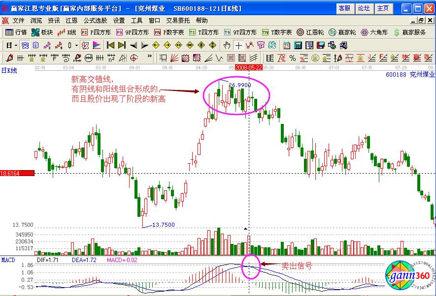 首先,“新高交錯(cuò)線”其實(shí)就是一種在股價(jià)高檔出排列的亂線,原因是該形態(tài)已經(jīng)失去了再推高的動(dòng)力,后市的形態(tài)可能是盤整,也可能是急速的下跌,投資者要注意及時(shí)的賣出操作。
