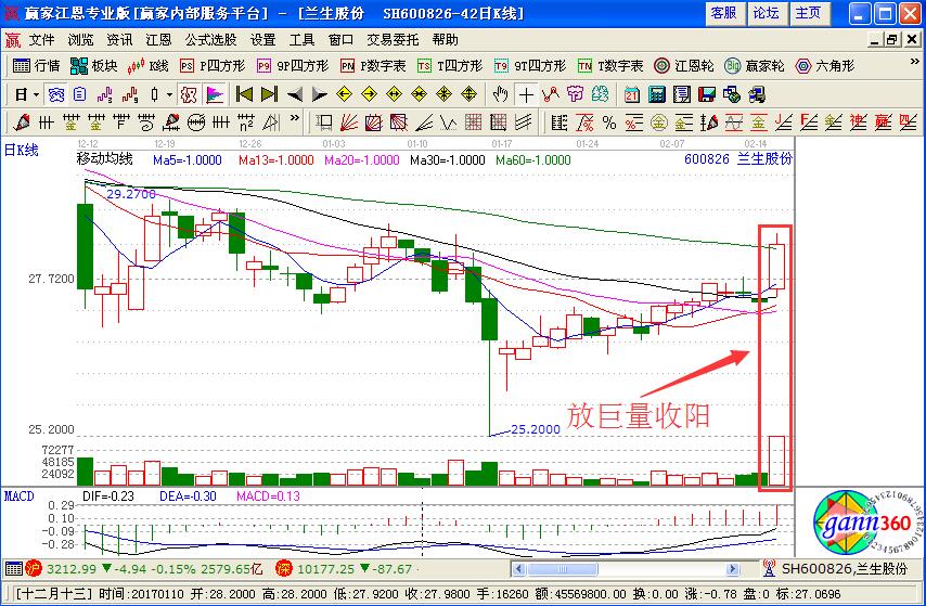 1.標(biāo)準(zhǔn)下降通道,突然爆發(fā)性放量拉高。這類股票大多有漂亮的下降通道,突然在某天放巨量收陽(yáng)線(上圖所示),由此底部形成。