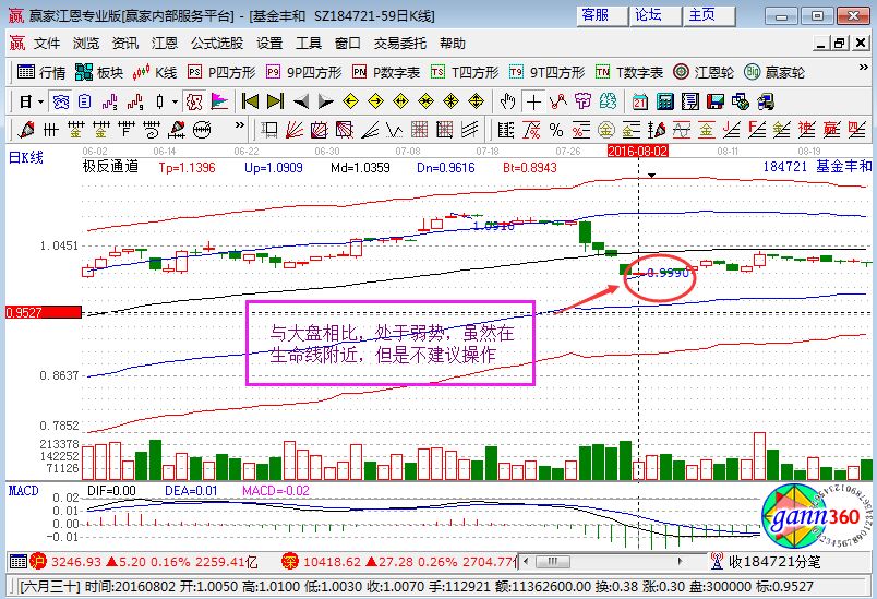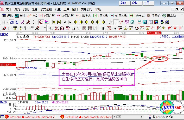 大盤的上證指數(shù)在2016年8月初的走勢(shì)中處于生命線上方的走勢(shì)形態(tài)(如上圖),其處于強(qiáng)勢(shì)區(qū)域,建議投資者可以選擇買入較強(qiáng)勢(shì)的個(gè)股,以生命線為標(biāo)準(zhǔn)點(diǎn)買入。