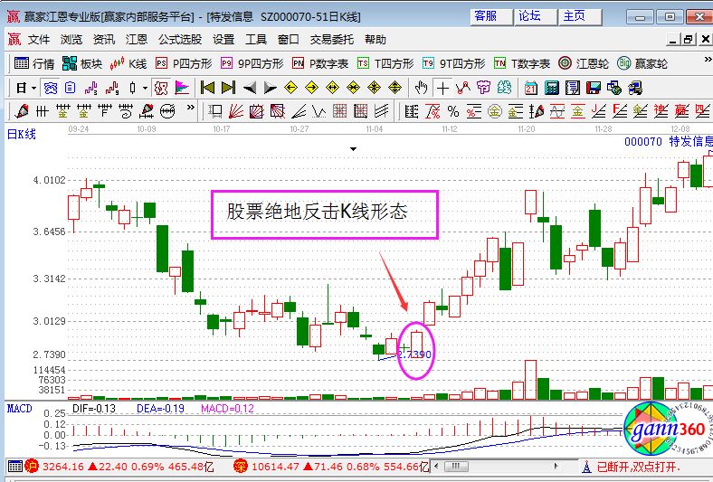 特發(fā)信息(000070):特發(fā)信息在經(jīng)過(guò)07年到08年的慘烈下跌后,股價(jià)于2008年11月7日走出了“絕地反擊”,當(dāng)天股價(jià)跳空低開(kāi),然后一路震蕩上行,尾盤(pán)收于次高點(diǎn)3.06元。