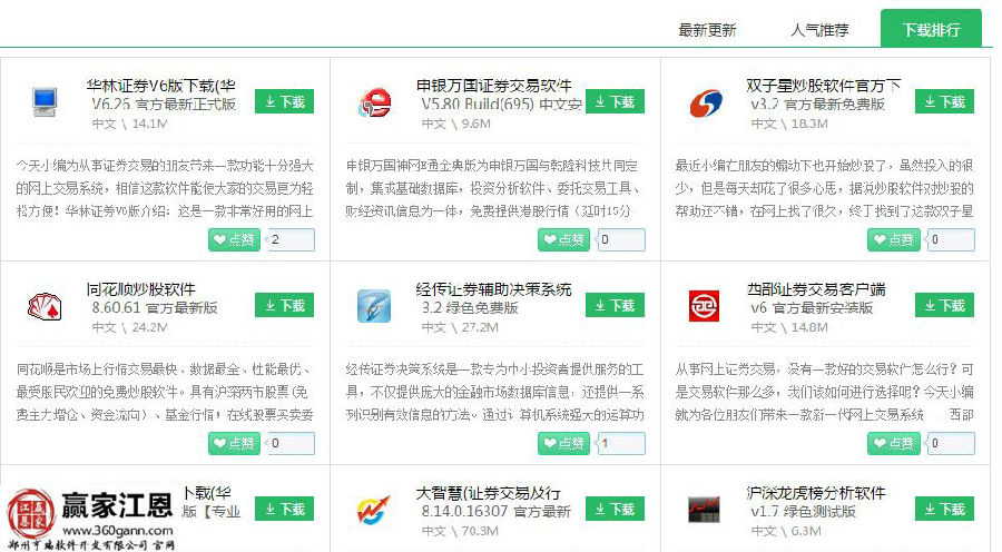 當然在翻閱其他網(wǎng)站下載排名又不一樣,基本上也都是我們會接觸的到一些軟件,例如同花順、大智慧、益盟、贏家江恩證券分析系統(tǒng)等等。這些軟件可謂是各有各的優(yōu)缺點,今天我們就來詳細的了解下。