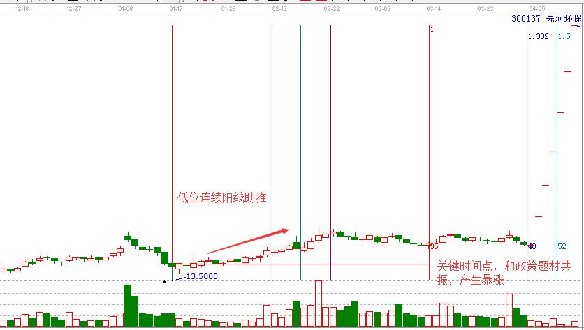 滬深市場中每輪牛市,漲幅最大的股票都是主力籌碼異常集中的低位螺旋槳股,尤其是那些經(jīng)過長期下跌依然扛過來的主力嚴重被套的股票,市場一旦好轉(zhuǎn),他們會的股票具有報復(fù)性的反彈和失去理性的瘋狂。螺旋槳股票啟動的時間有時會落后于大盤,因為主力需要出一部資金,作為拉伸資金,對于這種股票,一旦發(fā)現(xiàn)底部有拉升跡象,應(yīng)該果斷參與,如先河環(huán)保走勢圖。