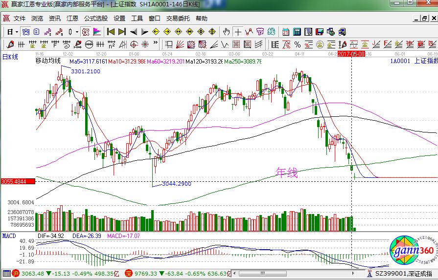 滬指方面今日跌破了年線支撐,日線走出5連跌,,走勢方面的確不好看,但A股市場歷來都有不破不立的慣例,尤其是跌破年線這種情況一般都會引起市場恐慌,但這次跌破年線性質不一樣因為在破年線之前滬指累積跌幅已經(jīng)不小,1000多只個股已經(jīng)跌破2638點時的價格,所以今日的砸盤誘空的嫌疑仍然比較大,目前滬指60分鐘k線仍然是一個大的底背離結構沒有變,所以今日很有可能是短線的最后一跌,后市大盤將會出現(xiàn)超跌反彈的觀點不變,下面是應用贏家江恩軟件所截的上證指數(shù)圖。