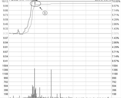 如上圖中標(biāo)示的①處,該股封上漲停板的時刻,就該利用“開閘放水”清洗短線浮動籌碼,為后面的拉升減輕少許阻力!