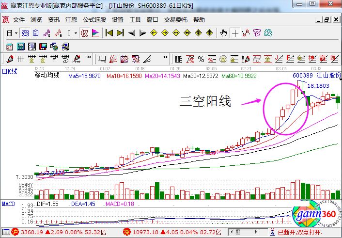三空陽(yáng)線是怎么樣的?如果是從文字上來講的話,它就是三次跳空的陽(yáng)線走勢(shì),如下圖所示。當(dāng)然能夠鄒城下面的走勢(shì),肯定是和市場(chǎng)出現(xiàn)的利好消息有關(guān)的,而且這個(gè)利好消息讓價(jià)格無法在一個(gè)交易日內(nèi)進(jìn)行消化,當(dāng)然還有看你呢過是由于個(gè)股的籌碼極度集中,主力在拉抬股價(jià)時(shí)阻力是非常小的,這兩種情況都是可以導(dǎo)致空頭斬倉(cāng)盤不斷增加的,股價(jià)連續(xù)腎功能沖,連續(xù)收出陽(yáng)線。