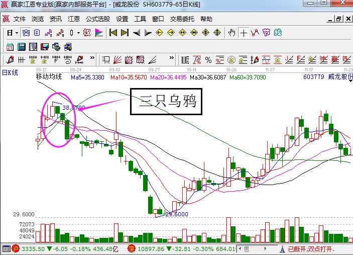 咨詢:13333833889烏鴉往往代表著不好事情,所以股票軟件中就有類似烏鴉的含義的走勢(shì),它就是三只烏鴉K線形態(tài)。那三只烏鴉K線形態(tài)有什么樣的特征?投資者怎么樣進(jìn)行操作?如果您對(duì)于它還不了解的話,今天我們就來進(jìn)行相關(guān)的了解。