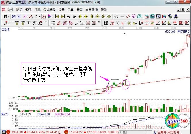 從上面的理論依據(jù)中,我們可以總結(jié)出股票走勢(shì)中的彩虹橋技術(shù)要點(diǎn)如下: