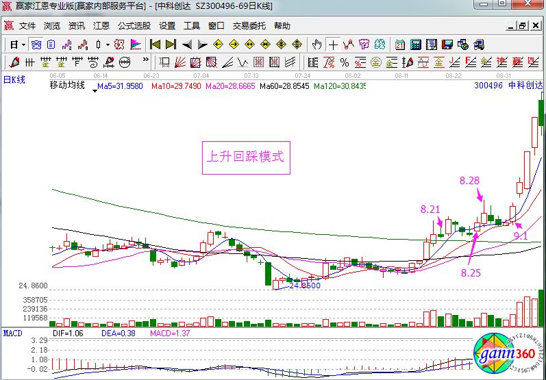 結(jié)合上面的圖形,我們可以看到這種模式在操作上是非??尚械模⑶以谶\(yùn)用中也是比較靈活的,市場(chǎng)出現(xiàn)的次數(shù)也是比較多,所以獲利的機(jī)會(huì)也是多的,如果是運(yùn)動(dòng)得當(dāng)?shù)脑?,那么就可以達(dá)到穩(wěn)定獲利的境界。及誒下來我們就來看中科創(chuàng)達(dá)的走勢(shì)圖。