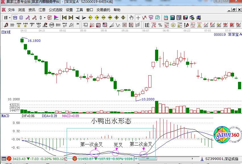 股票價格在相對的低位出現該形態(tài),顯然是一個比較好的買入時機;在該形態(tài)中,兩條線金叉會后,兩條線沒有上穿零軸是比較理想的狀態(tài),如果小鴨出水小幅的上穿,但是馬上回到零軸一下,那也是可以的。字出現該形態(tài)的同時,對應的成交量當然是越少越好了。