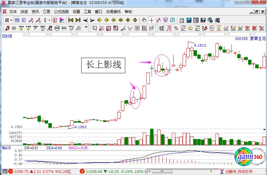 這種K線經(jīng)常發(fā)生在一些剛剛啟動不就的標(biāo)的上,有時是為了洗盤、震倉,往往用上影線嚇出不堅定的持倉者,投資者操作時應(yīng)當(dāng)看K線組合,而不要太關(guān)注單日的K線。