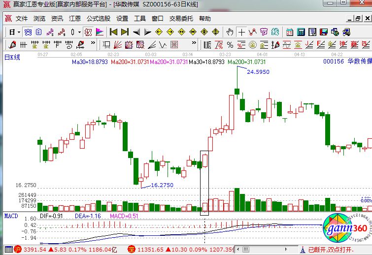 華數(shù)傳媒在2016年3月18日走出了第一根大陽(yáng)線,成交來(lái)個(gè)能呈現(xiàn)倍量走勢(shì),符合了堆量戰(zhàn)法的必備條件,之后股價(jià)線上跳空形成小碎陽(yáng)的上漲形態(tài),在3月23日向下低開(kāi),此時(shí)就是很好的買入點(diǎn)位置。賣點(diǎn)的位置大家就可以參考上面的賣點(diǎn)依據(jù)進(jìn)行賣出,當(dāng)然可以依靠極反通道指標(biāo)來(lái)進(jìn)行判斷。
