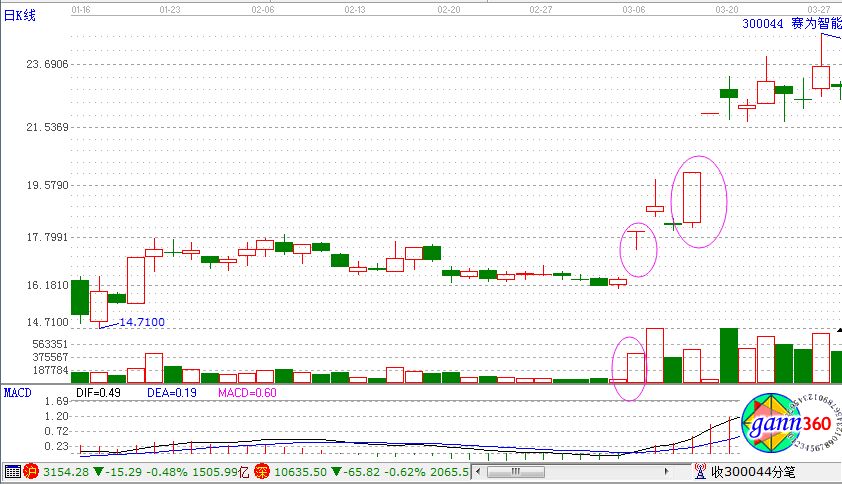 主力從吸籌到出貨會(huì)有很多過(guò)程,包括底部吸籌、洗盤(pán)、拉抬、洗盤(pán)、拉抬然后到最后出貨,為了使資金利用效率最大化我們要盡可能抓住主力拉抬的過(guò)程。接下來(lái)我們來(lái)看賽為智能的走勢(shì)圖。