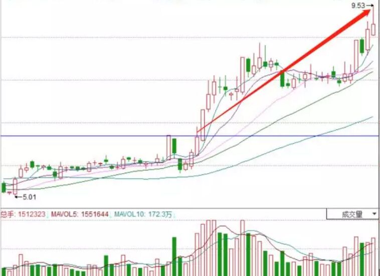 上圖是寶泰隆在2016年8月份的時候,當(dāng)時上升指數(shù)是小幅度盤跌之后見底上漲,而該股卻能夠先于大盤創(chuàng)出當(dāng)時的新高,一下子突破了所有均線的壓制,顯然是典型的魚躍龍門形態(tài),同時在形成該形態(tài)的同時放出巨量,市場資金加速流入,隨后的30個交易日內(nèi),股價卻從未跌破30日均線,累計上漲達(dá)到了40%。
