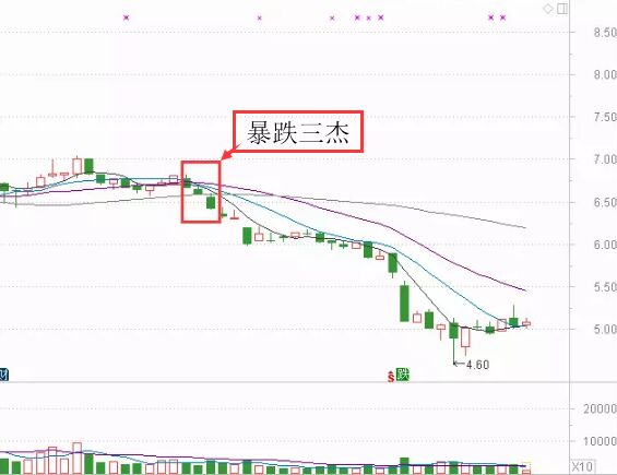 在掌握了暴跌三杰形態(tài)的特征之后,相信大家在實戰(zhàn)中已經(jīng)會進行辨別了,那我們就來看一張實戰(zhàn)圖形。