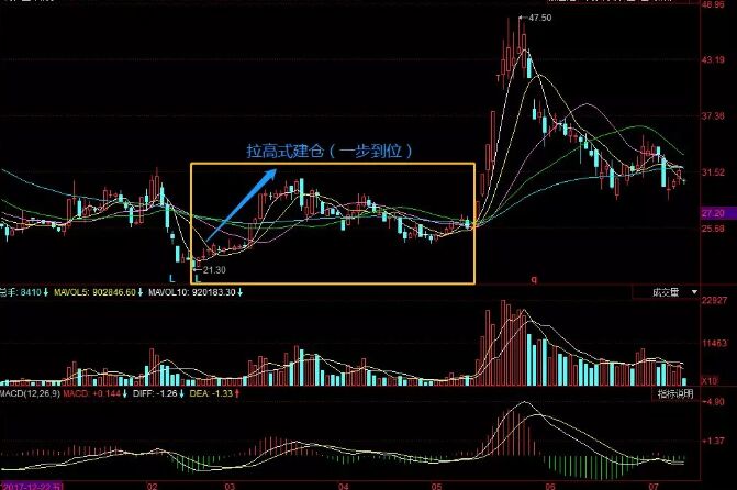 拉高式建倉大多是出現(xiàn)在冷門股以及長期下跌的股票中,具體的表現(xiàn)就是:股價迅速從低位抬高,成交量急速放大。這種以空間換取時間的建倉方式表明莊家實力雄厚、作風兇悍,后期必有巨大的上升空間。拉高式建倉一般有兩種情況,即一步到位式和連續(xù)拉升式。