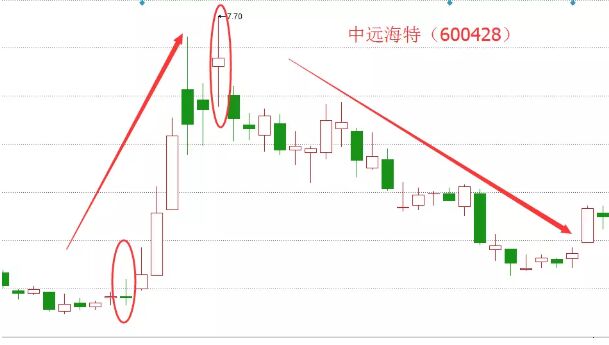 上面的圖形是中原海特在2016年11月份的走勢圖,從圖中我們可以看到該股走出了兩個高浪線,一個而是在11月9日一個是在11月17日。在9日出現(xiàn)該形態(tài)之后,三根陽線進(jìn)一步的強(qiáng)化了這個變動的洗好,所以股價(jià)從9日高浪線開始上升,最后停滯于11月17日的陽線高浪線,在第二天行情以一個長陰線的方式急速下跌,這就進(jìn)一步的確認(rèn)了高浪線是市場頂部反轉(zhuǎn)信號的可能性。