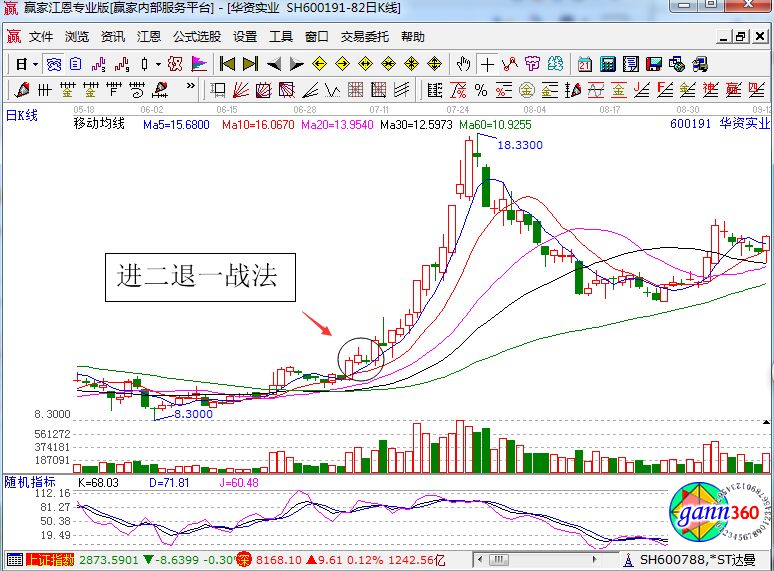 4、整體形態(tài)要求處于低位,股價(jià)沒有經(jīng)過(guò)大幅上漲,而且前兩日的放量陽(yáng)線應(yīng)該處于拐點(diǎn)位置,在明顯上升趨勢(shì)中途的兩根陽(yáng)線則不屬于這個(gè)戰(zhàn)法的法則范圍。下面我們就打開股票軟件調(diào)出華資實(shí)業(yè)的日K線圖。