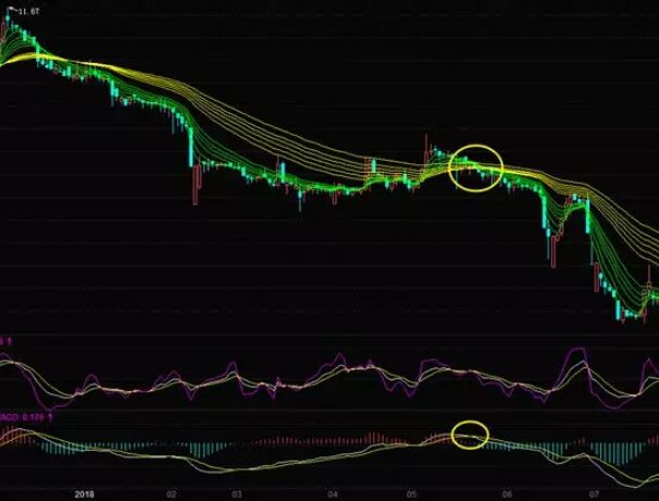 為什么反彈會失敗?主要的原因就是K線回升時(shí),成交量始終是沒有配合進(jìn)行增量的,這就說明了市場人氣的不足,主力沒有大量持續(xù)吸籌買入,此次反彈知識主力在趁機(jī)拉高出貨,所以投資者不可以盲目的進(jìn)場。那為了確認(rèn)判斷結(jié)果,投資者還需要觀察另外一個(gè)指標(biāo),macd。如果macd干脆地形成死叉,顯示為下降走勢,那么投資者就可以確認(rèn)后市下跌行情,如下圖所示。