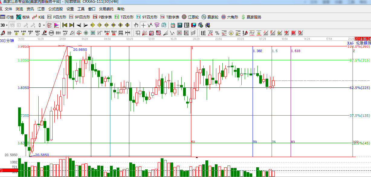 白銀昨日收盤小陽(yáng)線報(bào)收,高位蓄勢(shì)整理,處于技術(shù)修正階段,今日盤面關(guān)注支撐江恩225度位置價(jià)格20.83,第二支撐20,73,江恩225不破將有小幅上漲,上方阻力留意江恩315度20.93附近,(支撐和阻力可相互轉(zhuǎn)化,大家和結(jié)合位置做決定),今日時(shí)間方面6:00, 8:30 ,11:30,16:,00,18:30投資者盤中可密切留意時(shí)間窗口,結(jié)合盤中位置做策略【如有疑問,請(qǐng)聯(lián)系贏家客服】
