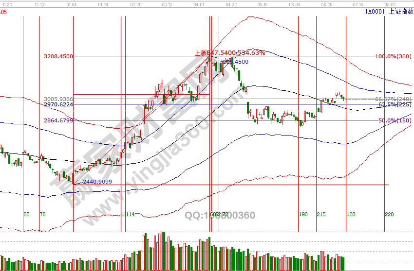 2號午盤在贏家江恩系統(tǒng)學(xué)員區(qū)及當(dāng)日收盤分析中,講述了通過極反通道判斷出的短周期周期共振警示信號,所提出結(jié)論目前正在一步步得到市場的確認(rèn),逐級回踩生命線,這也是近兩日一直談到不讓開新倉的技術(shù)依據(jù),短期警示信號是結(jié)束還是展開新的周期修整,將于今天見分曉。整體上2840附近所展開的反彈還沒有結(jié)束,短線具有參考價(jià)值就是60分鐘的生命線位置。,7月5號盤中壓力是45度3016點(diǎn)、90度3036點(diǎn),盤中支撐是315度2978點(diǎn),下個(gè)時(shí)間窗口是15號。操作策略,指數(shù)極反通道生命線上安全區(qū)域震蕩上攻,反彈動作還未結(jié)束,短線關(guān)注2978-2983位置,整體持倉保持3-5成。