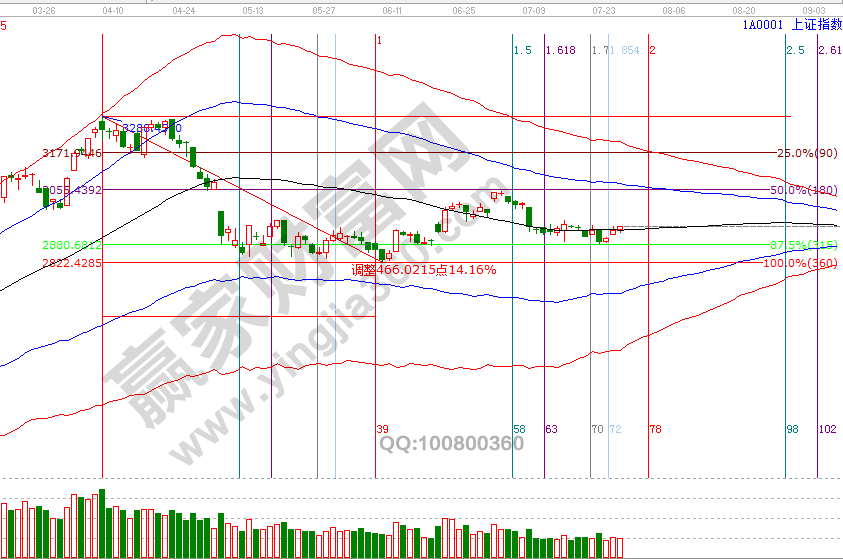 24號先行指數(shù)上證50收復(fù)短周期60分鐘關(guān)鍵位,贏家江恩技術(shù)服務(wù)老師在學(xué)員區(qū)及時(shí)解讀了此信號,收復(fù)此線則代表新一波震蕩反彈動(dòng)作的展開,周四滬指日線及短周期全部進(jìn)入生命線上安全區(qū)域,需要注意的是短周期15分鐘即將觸碰極反通道藍(lán)色上軌線,預(yù)示著26號早盤沖高后會(huì)出現(xiàn)滯漲情況,從各周期線關(guān)系看反彈動(dòng)作還將延續(xù),修整是對突破日線生命線一次確認(rèn)動(dòng)作,此處反彈空間與時(shí)間維持不變,下個(gè)時(shí)間窗口是8月1號,7月26號盤中壓力是225度2944點(diǎn)、270度2961點(diǎn),盤中支撐是135度2911點(diǎn)。操作策略,指數(shù)極反通道生命線震蕩,信號延續(xù)價(jià)格看60分鐘上軌線,時(shí)間看8月1號,信號結(jié)束為上證50失守60分鐘生命線,整體持倉保持3成。