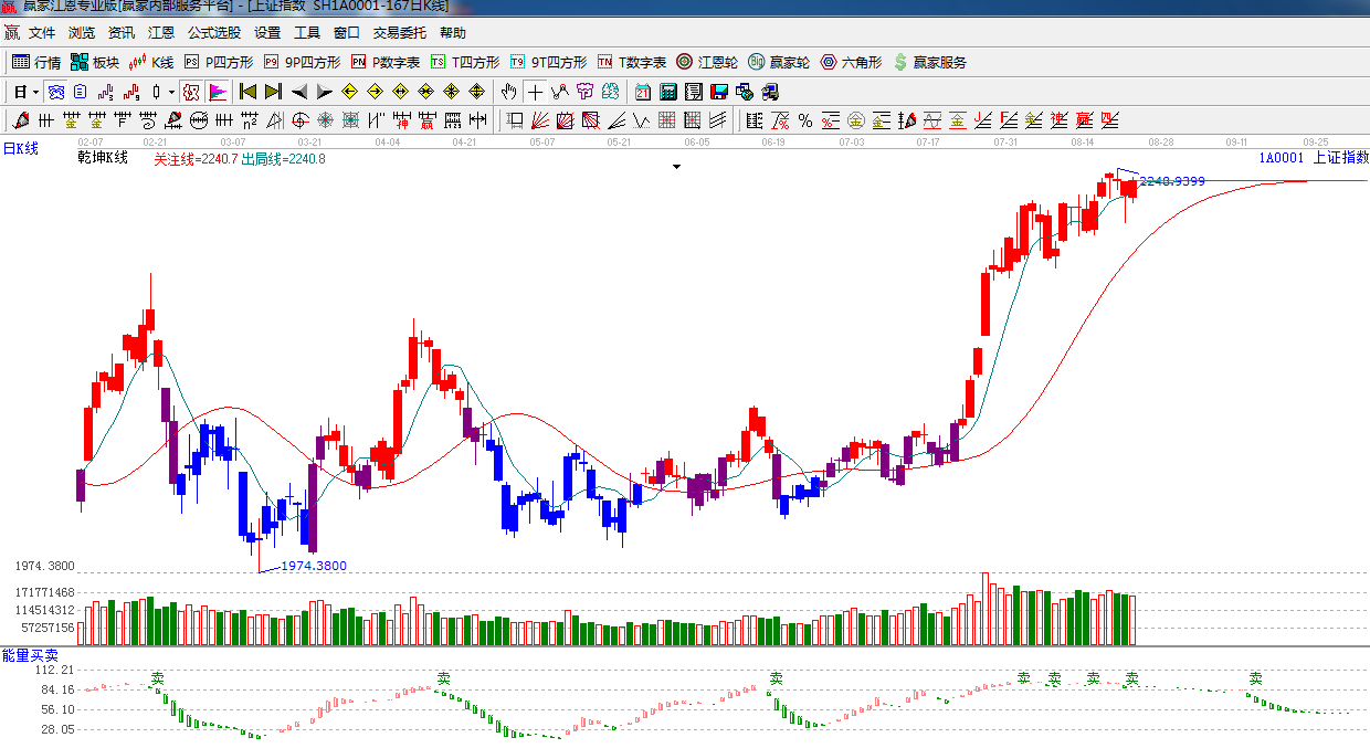 ★依據(jù)贏家江恩系統(tǒng)乾坤K線提示: 紅色可操作區(qū)域,盤中破位出局線,午后收回,短期趨勢謹(jǐn)慎看多。