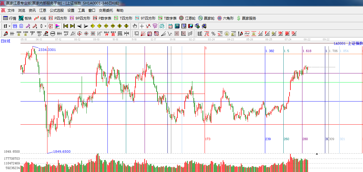 江恩看盤綜述:依據(jù)贏家江恩技術(shù)工具分析得出:8月21日時間之窗,盤中下探,周五再次收復(fù),六角形分析下方90度角度線2210一線支撐,此位置不破,市場仍將繼續(xù)震蕩整理為主,整體向上趨勢不變,操作上,合理控制倉位,做好高拋低吸。