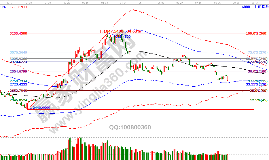 先回顧下近期預(yù)判,6號(hào)指數(shù)觸及日線極反通道藍(lán)色下軌線2744點(diǎn)定性反抽開始,并測(cè)算時(shí)間指向16號(hào),空間指向百分比延伸180度2834點(diǎn)(14號(hào)最高點(diǎn)2829點(diǎn))。16號(hào)是8月日線級(jí)別時(shí)間窗口,趨勢(shì)方面明天指數(shù)將確認(rèn)一重要關(guān)鍵線,影響著下一個(gè)時(shí)間周期的走勢(shì)。13、14號(hào)分析中談到的一次價(jià)格快速波動(dòng)期是連續(xù)的,按歷史規(guī)律15分鐘再度失守生命線指數(shù)將直逼6號(hào)低點(diǎn)。激進(jìn)者剩余最后一批倉以百分比延伸線120度2791點(diǎn)得失做決策。8月16號(hào)盤中壓力是225度2815點(diǎn)、270度2829點(diǎn),盤中支撐是135度2786點(diǎn)、90度2772點(diǎn)。操作策略,指數(shù)生命線下弱勢(shì)區(qū)運(yùn)行,激進(jìn)者3成倉以內(nèi)交易,穩(wěn)健者空倉休息。