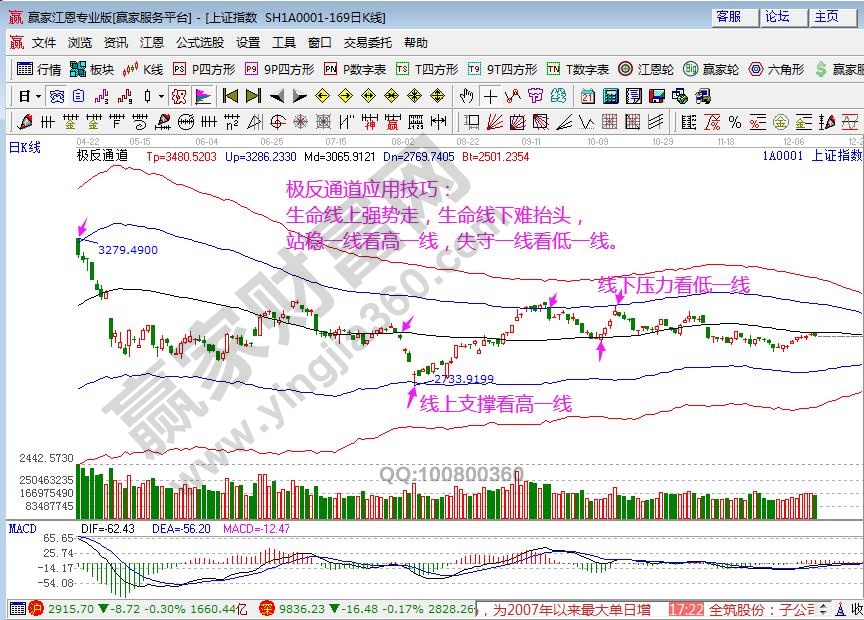 ☆依據(jù)贏家江恩系統(tǒng)極反通道提示:日K線連續(xù)兩天反攻黑色生命線2931點(diǎn)遇壓力止步,未突破生命線前看空。