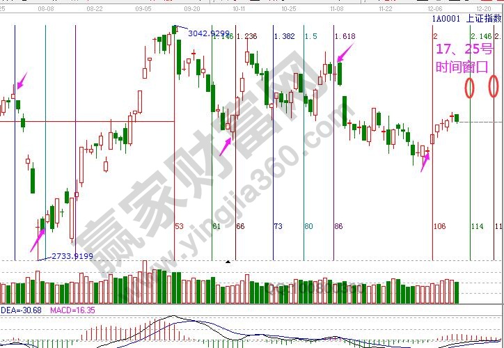 ★依據(jù)贏家江恩系統(tǒng)江恩黃金時(shí)間周期線提示:12月5、6號(hào)時(shí)間窗口指數(shù)上行,下個(gè)時(shí)間窗口12月17號(hào)。