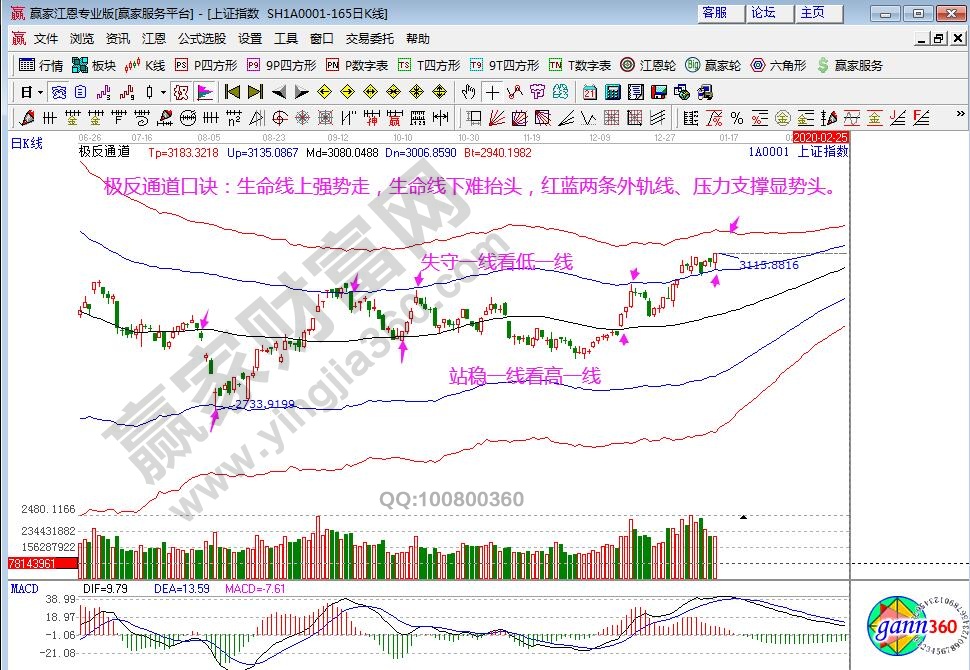 ★依據贏家江恩系統(tǒng)極反通道分析:日K線13號下探藍色上軌線3075點支撐后上攻,按規(guī)則短期看多。